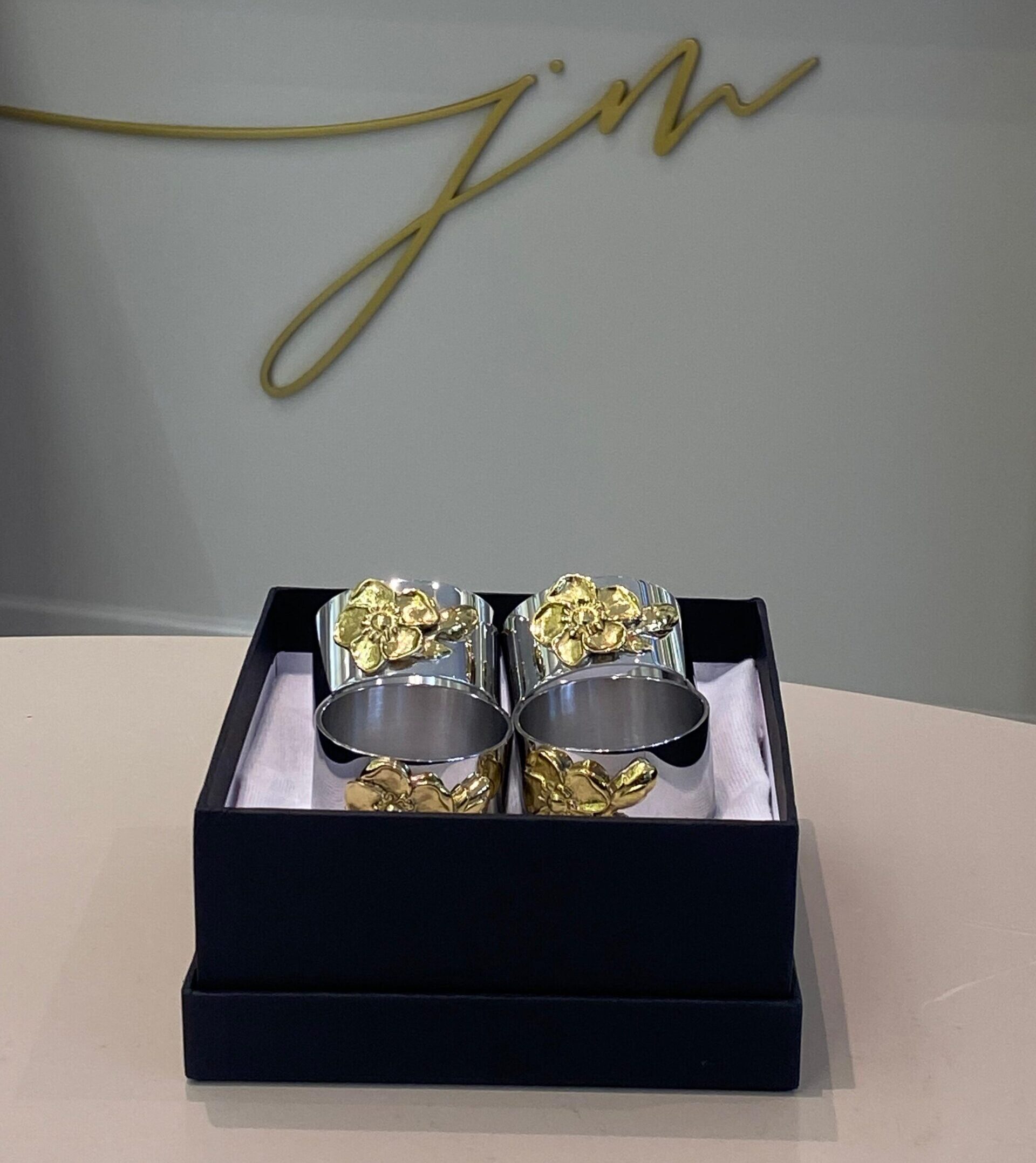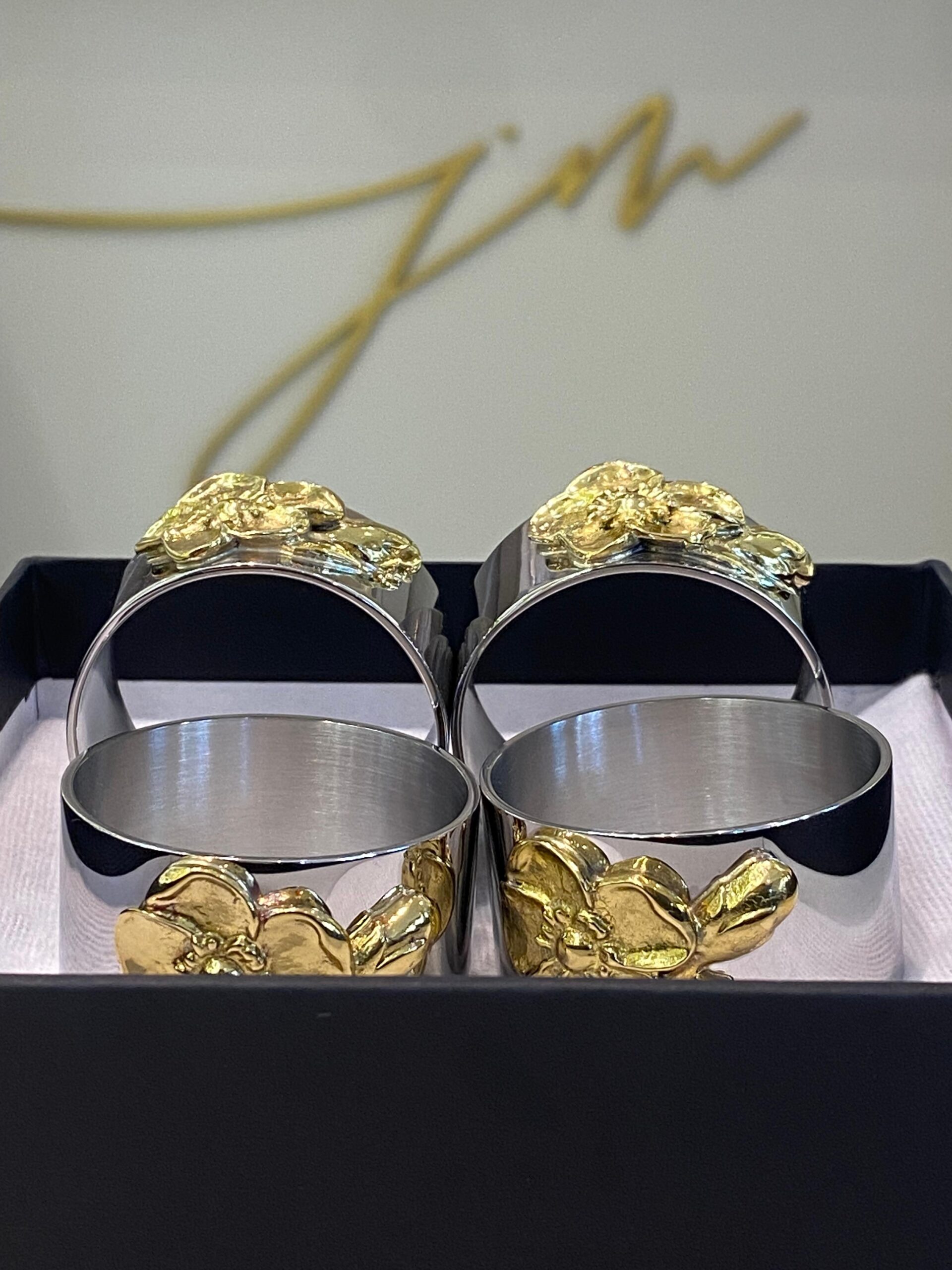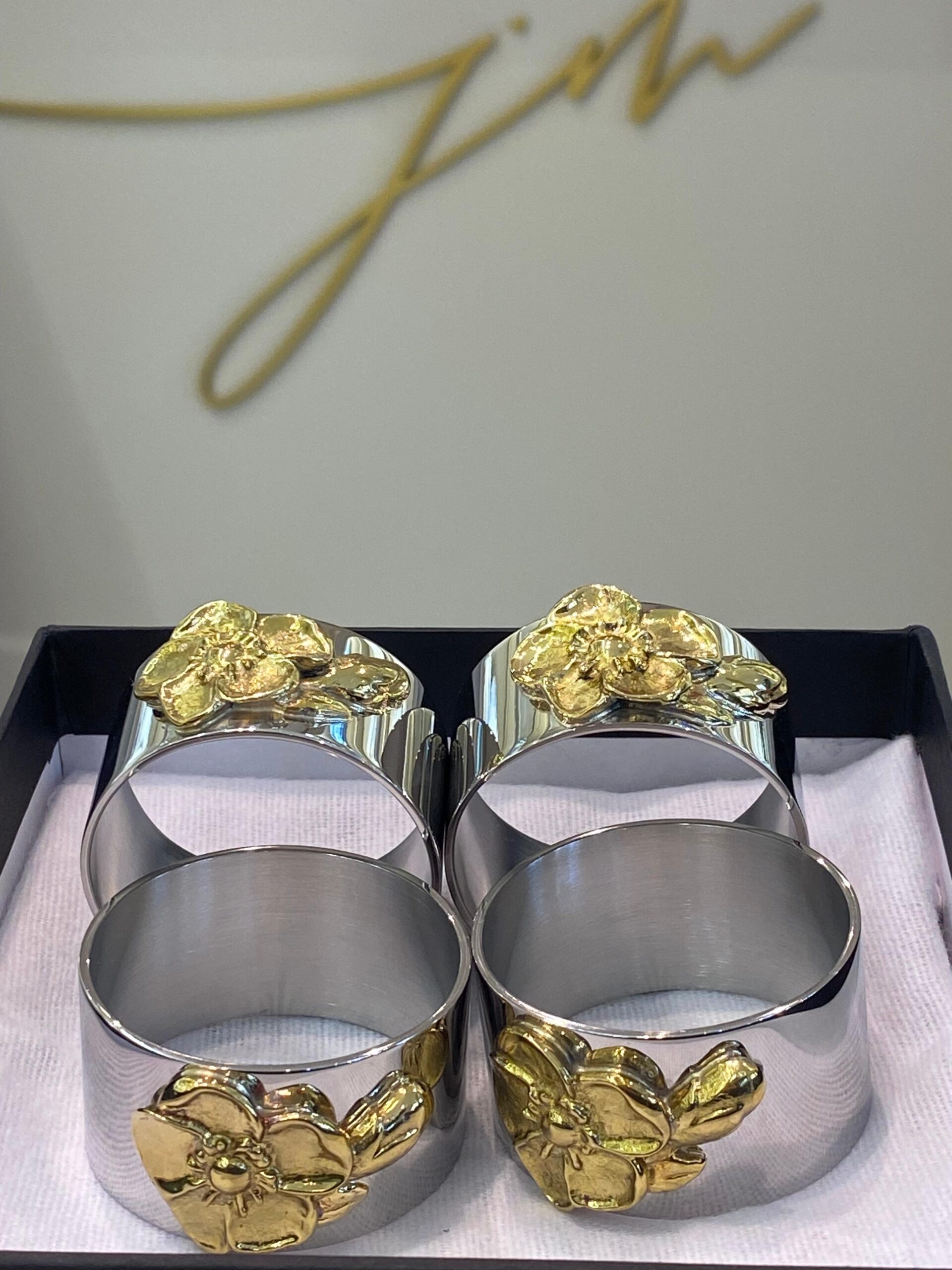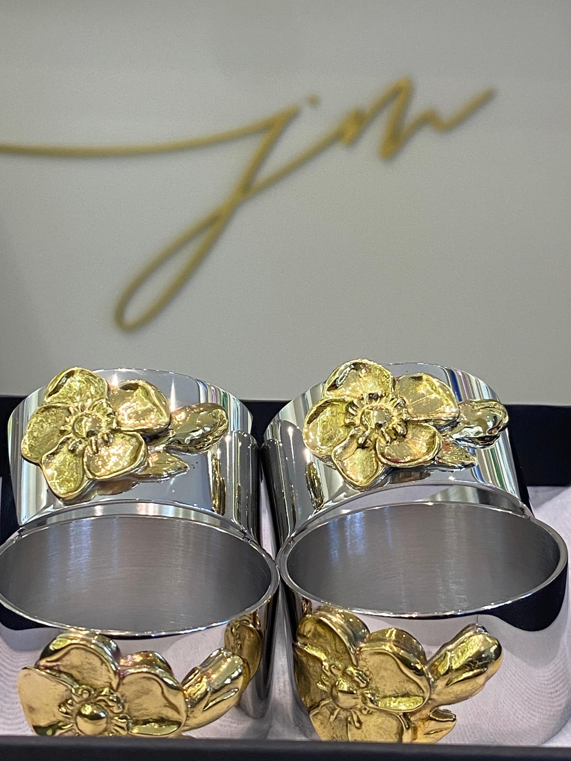 Porta Guardanapo Anel Flor Dourada Orfevrerie Royale